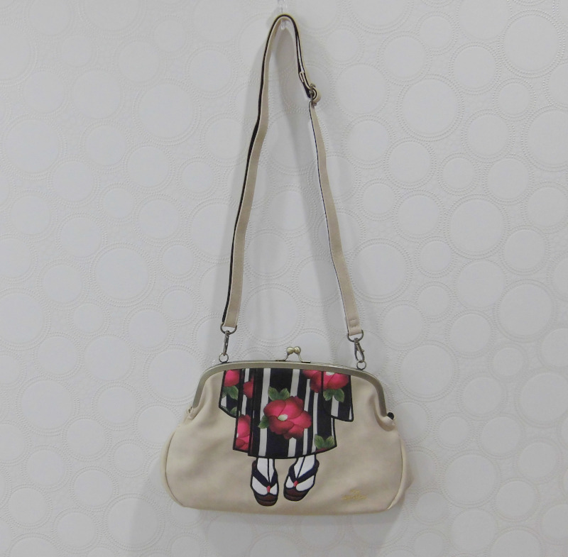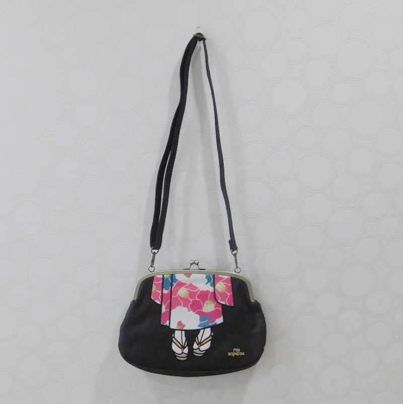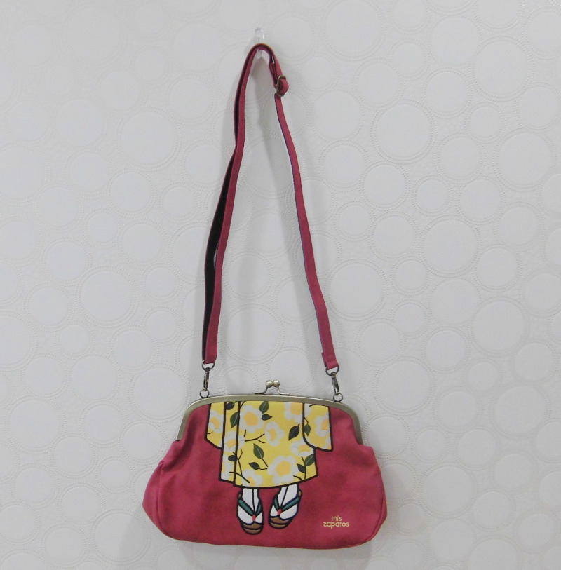 ミスサパトはスペイン語で「私の靴」 このタイプは着物の柄なので足元は草履の柄をあしらった個性的なデザインのがま口型ショルダーバッグです